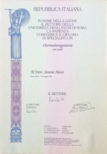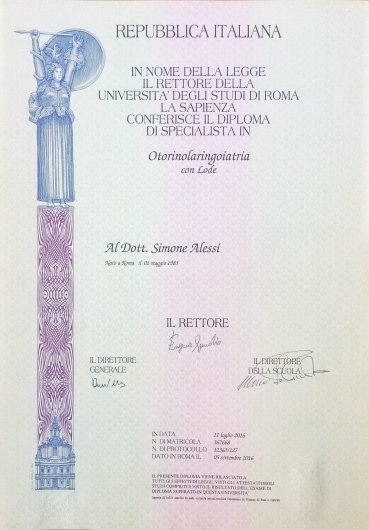Durante il percorso accademico mi sono appassionato allo studio dell’otorinolaringoiatria specializzandomi nel Luglio 2016 con il massimo dei voti e la Lode.